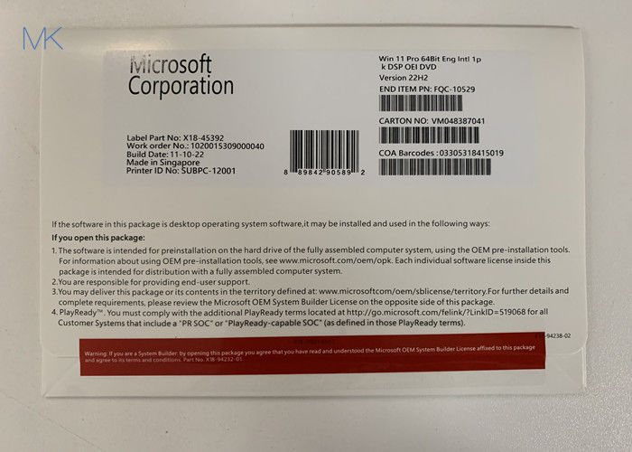 Microsoft Soem-System-Erbauer-Wind-оws 11 Berufs-Soem 64-Bit-OEI DVD englisches 22H2